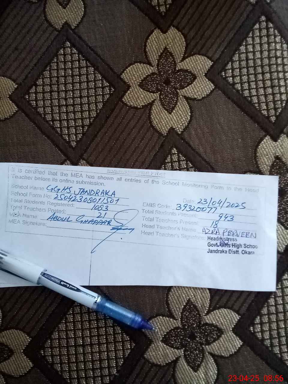 | EMIS Code: 39320077 | Name of School: GGHS JANDRAKA | |||
