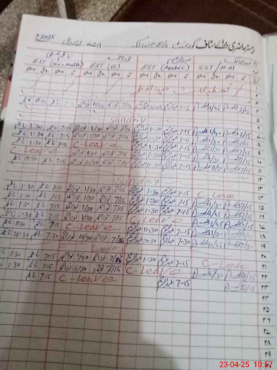 | Leave | Duty | Absent | Maternity | Medical | Ex- Pak |