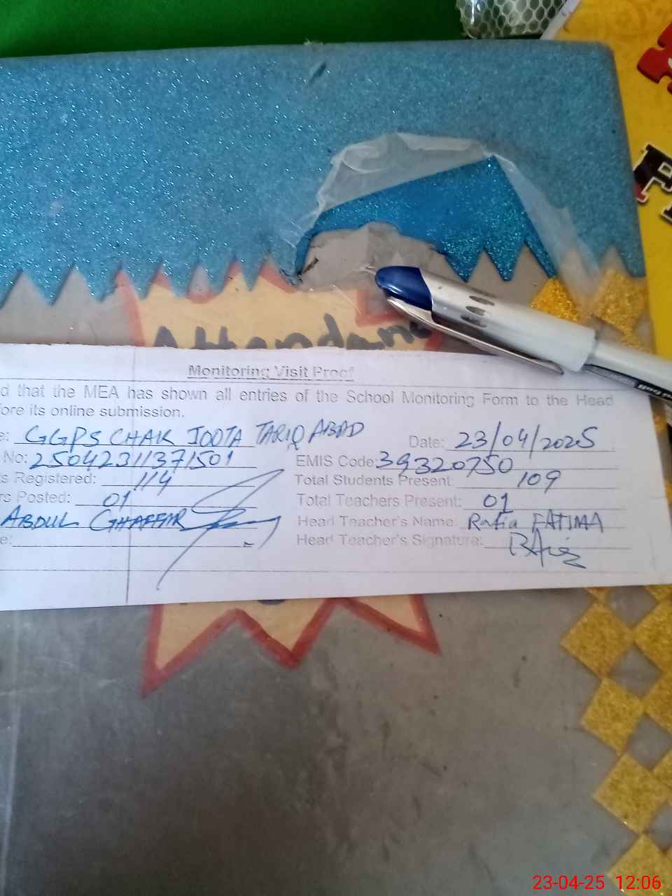 | EMIS Code: 39320750 | Name of School: GGPS CHAK JOOTA / TARIQ ABAD | |||