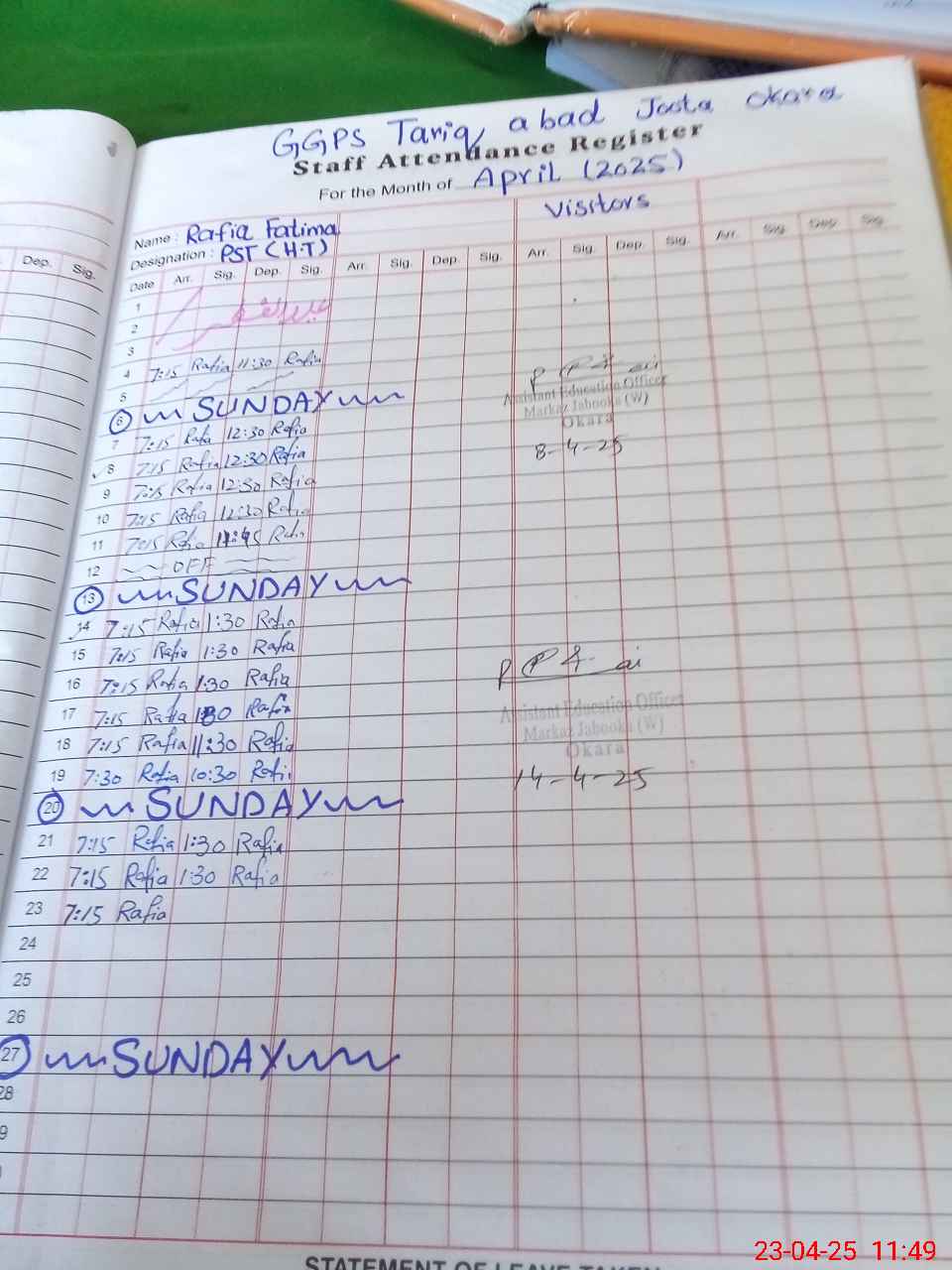 | Name: Ra**** Fa**** Designation: (School Headmaster's/Headmistress's) PST Phone/Cell Number: 03**** |