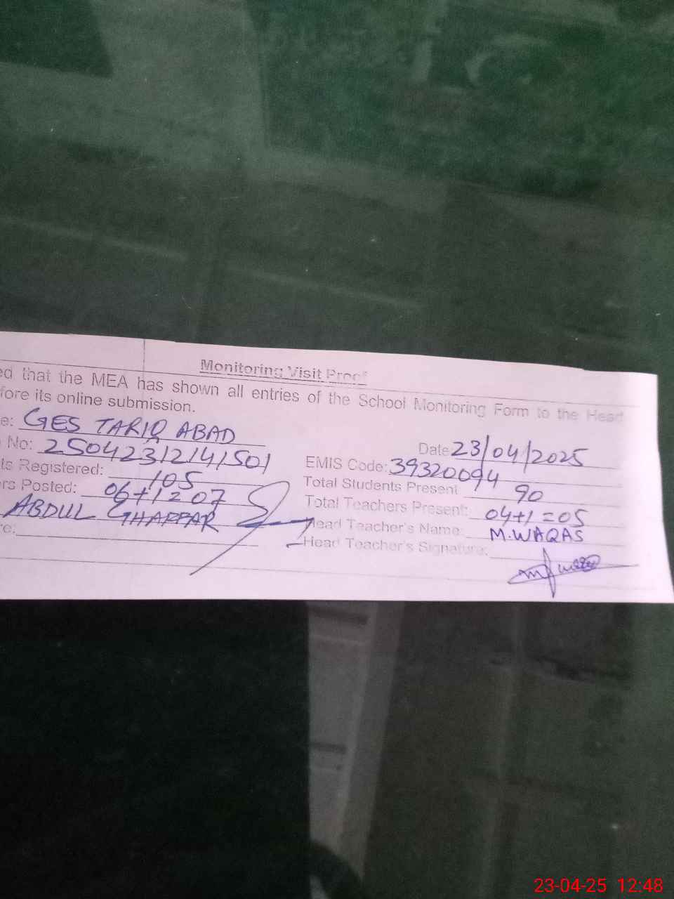 | EMIS Code: 39320094 | Name of School: GES TARIQ ABAD | |||