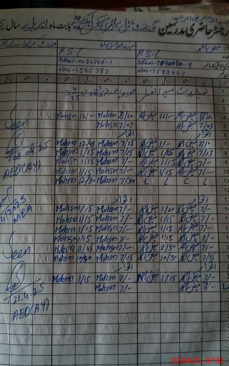 | Name: FA**** AH**** Designation: (School Headmaster's/Headmistress's) PST Phone/Cell Number: 03**** |