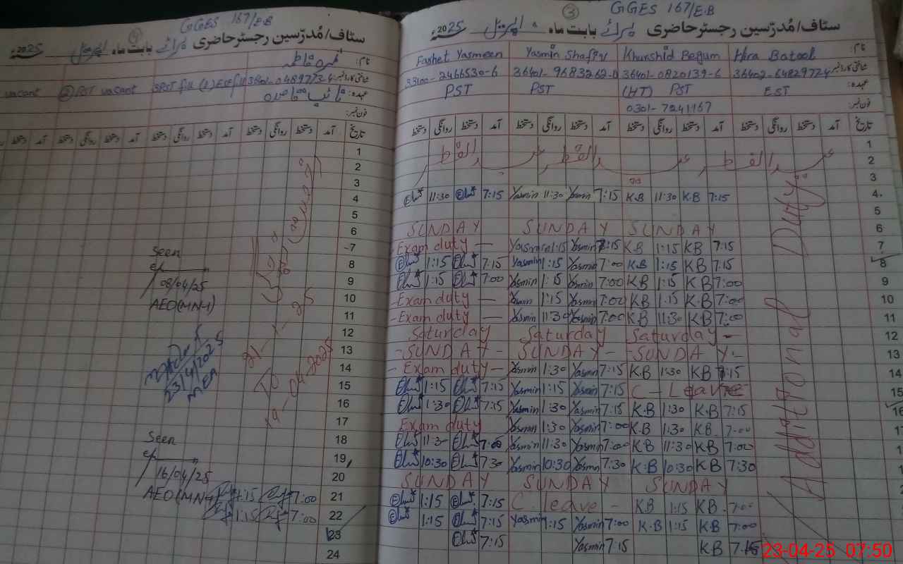 | Name: KH**** BE**** Designation: (School Headmaster's/Headmistress's) PST Phone/Cell Number: 03**** |