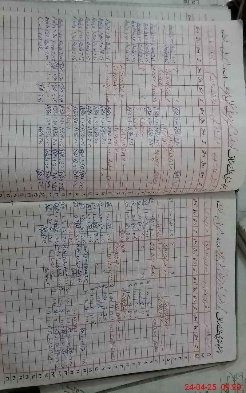 | CNIC | Full Name | Designation | R/C | Absence During Last Calender Month |