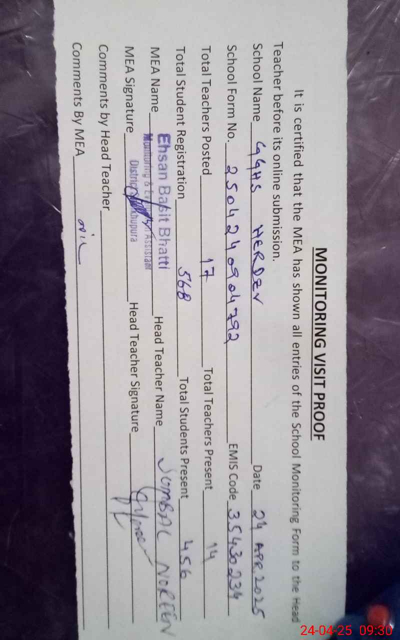 | EMIS Code: 35430234 | Name of School: GGHS HERDEV | |||