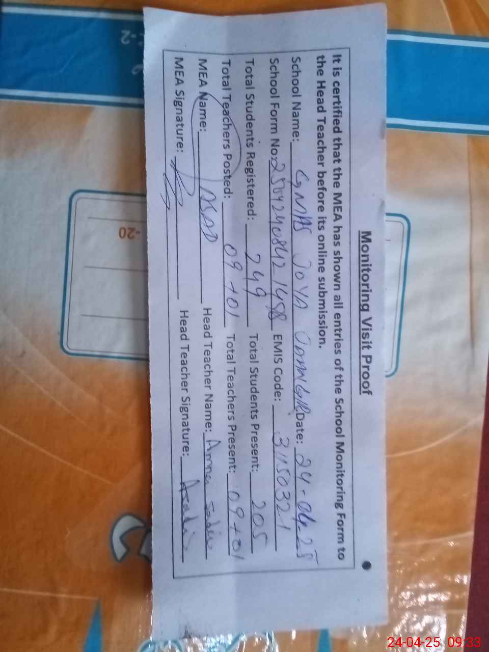 | EMIS Code: 31150321 | Name of School: GMHS JOYIA JAHANGIR | |||