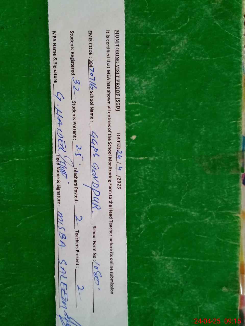 | EMIS Code: 38470716 | Name of School: GGPS GOND PUR | |||