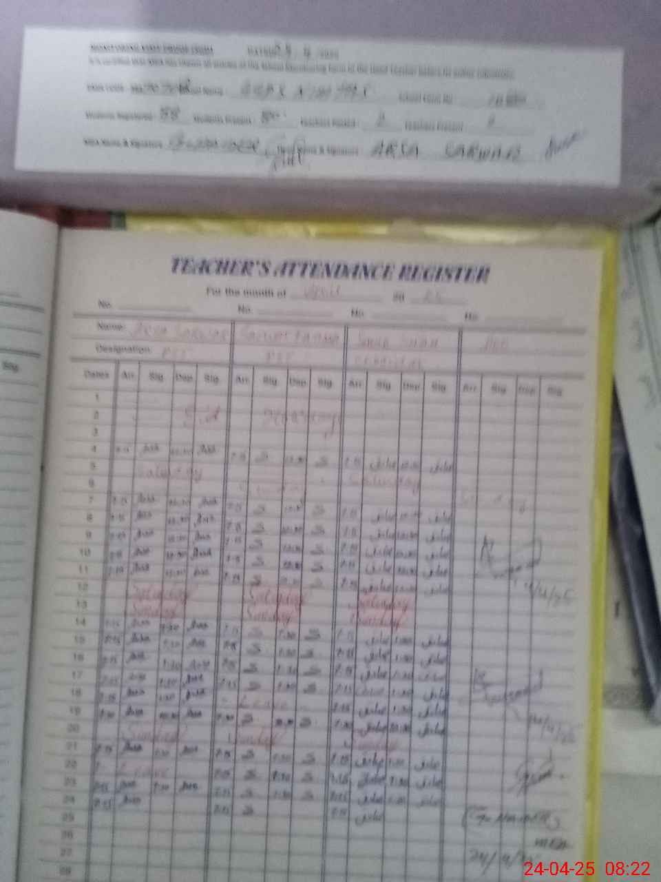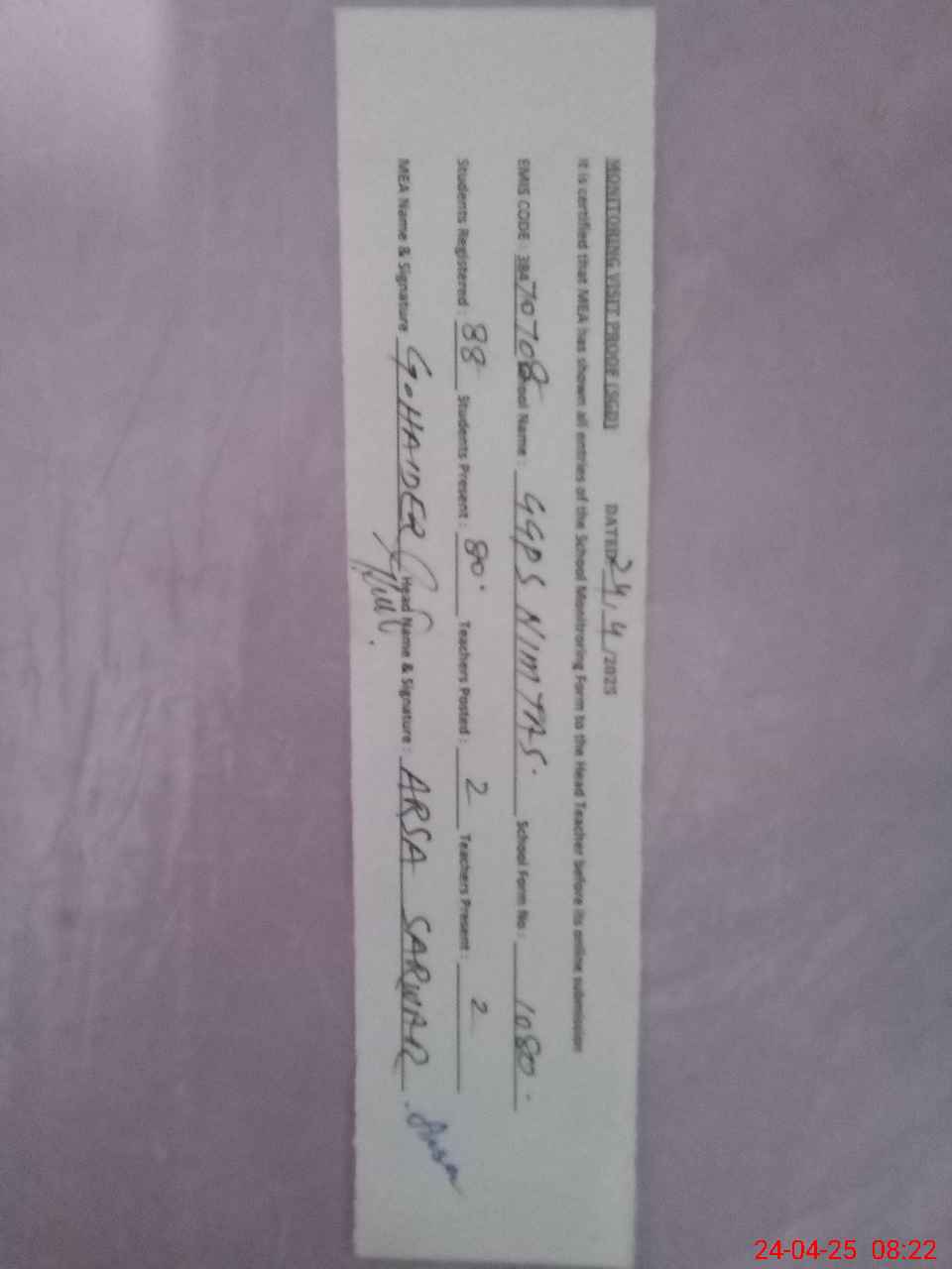 | Attendance Register | Head Teacher | MEA with School | Visit Proof |