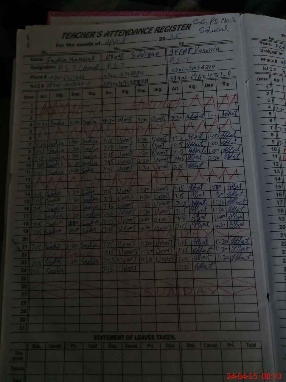 | Name: SA**** KA**** Designation: (School Headmaster's/Headmistress's) PST Phone/Cell Number: 03**** |