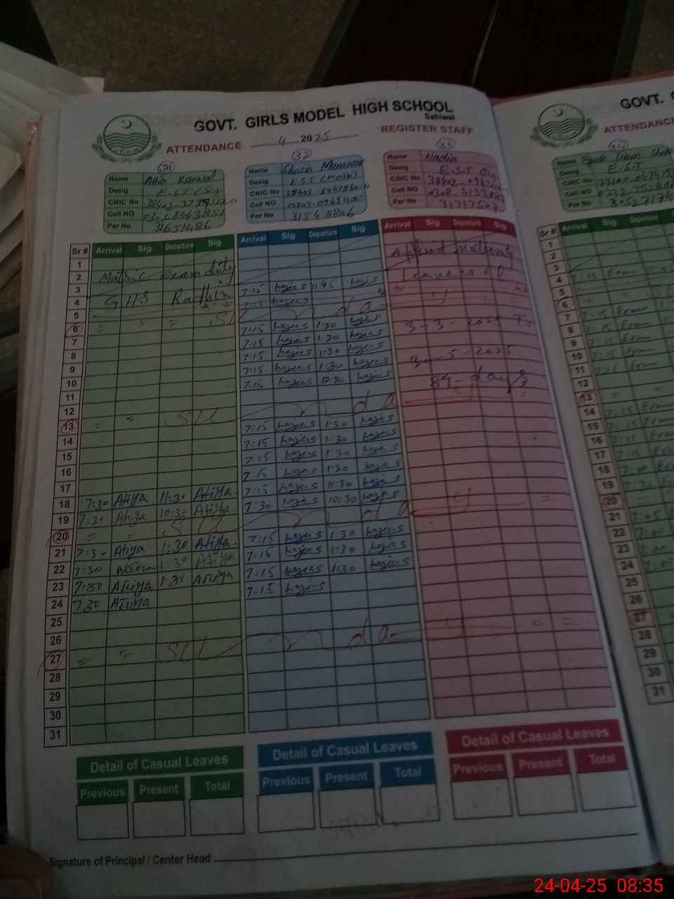 | CNIC | Full Name | Designation | R/C | Absence During Last Calender Month |