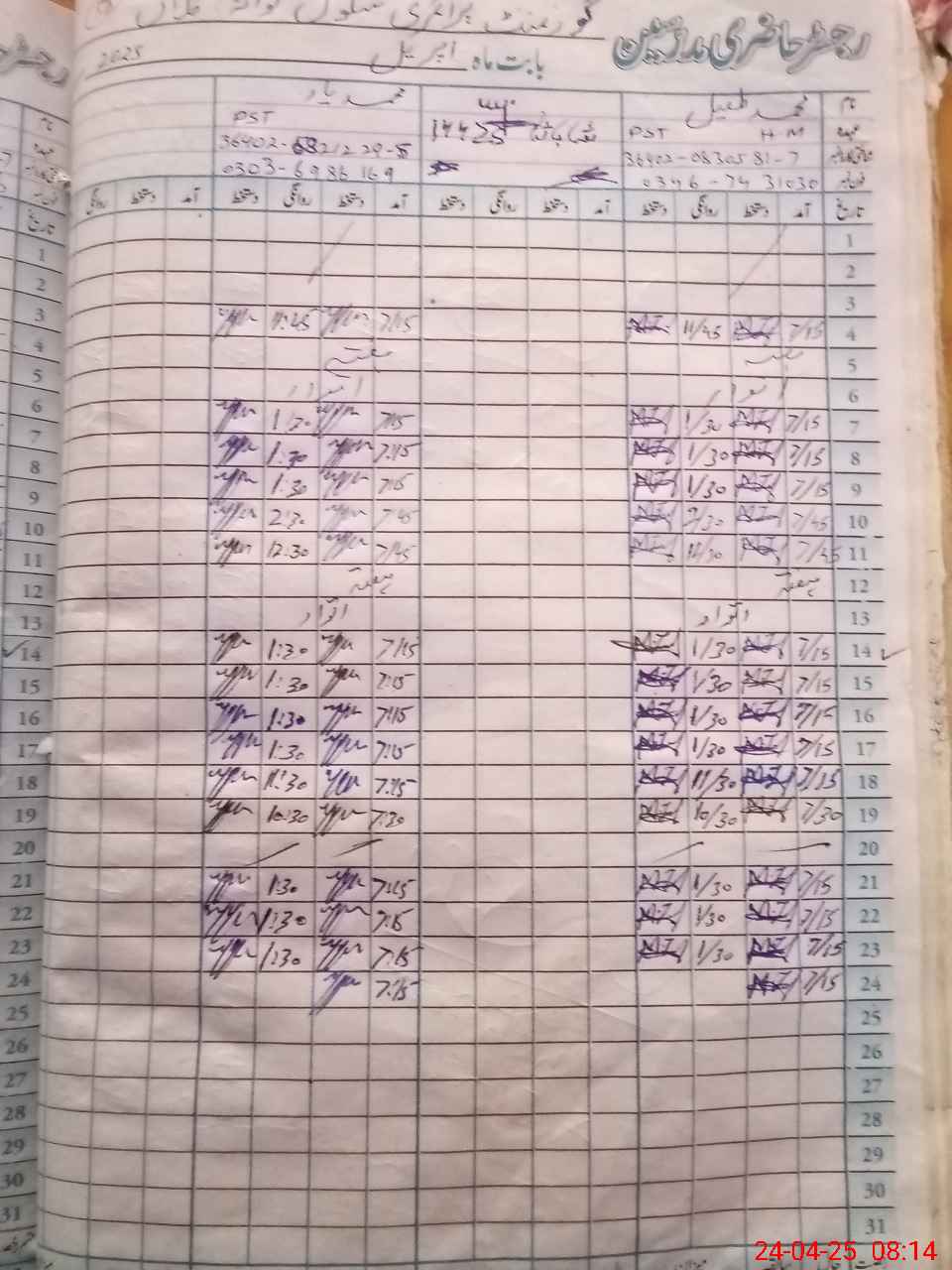 | CNIC | Full Name | Designation | R/C | Absence During Last Calender Month |