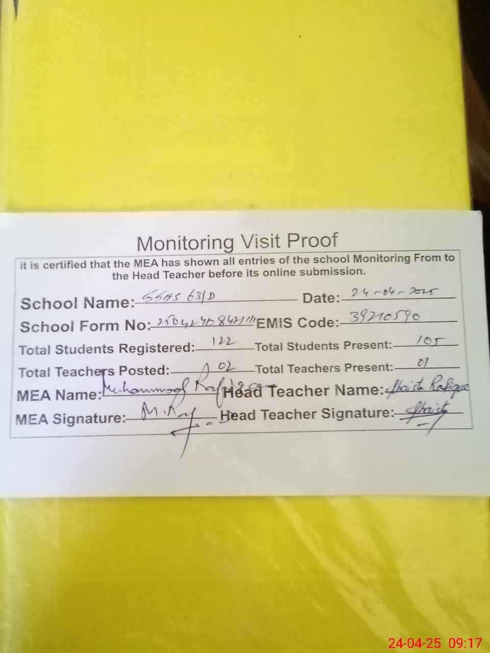 | EMIS Code: 39210590 | Name of School: GGHS 63/D CHOWK SIKANDER | |||