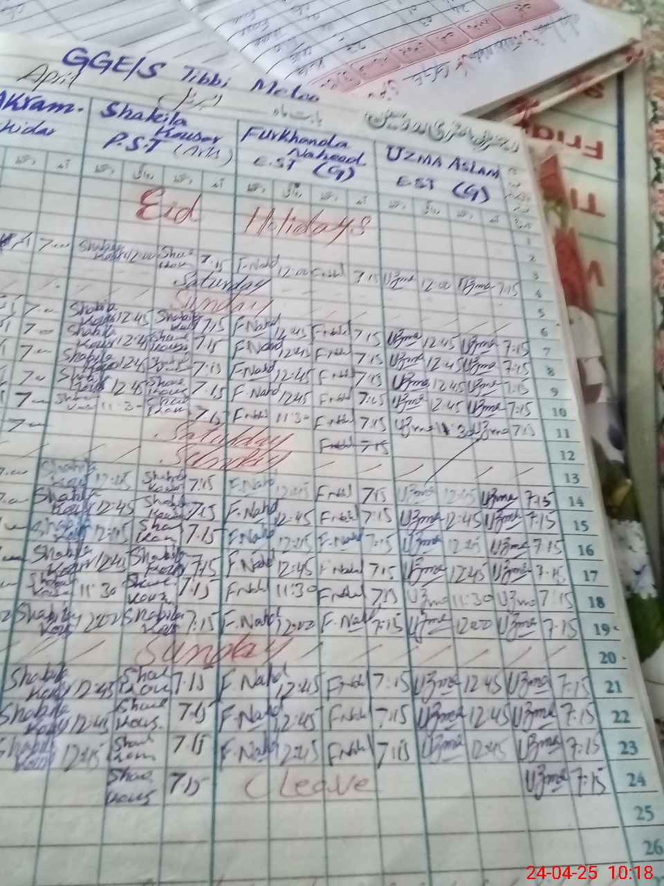 | Leave | Duty | Absent | Maternity | Medical | Ex- Pak |