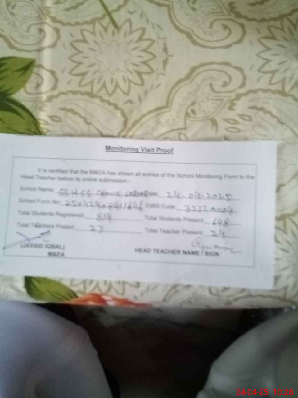 | EMIS Code: 32320004 | Name of School: GGHSS CHOWK SARWAR SHAHEED | |||