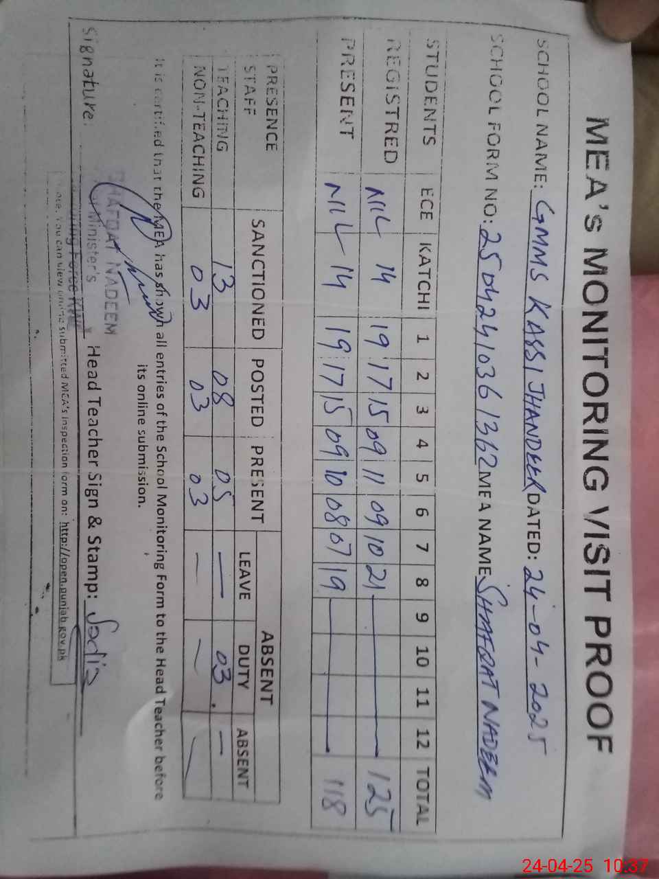 | EMIS Code: 36410631 | Name of School: GMMS KASSI JHANDEER | |||