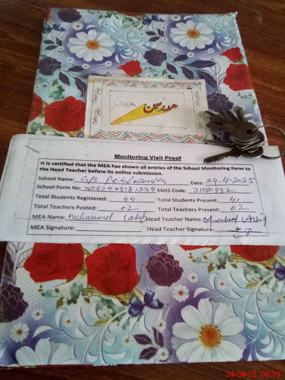 | Attendance Register | Head Teacher | MEA with School | Visit Proof |