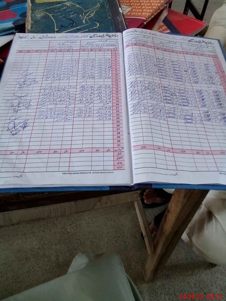 | CNIC | Full Name | Designation | R/C | Absence During Last Calender Month |