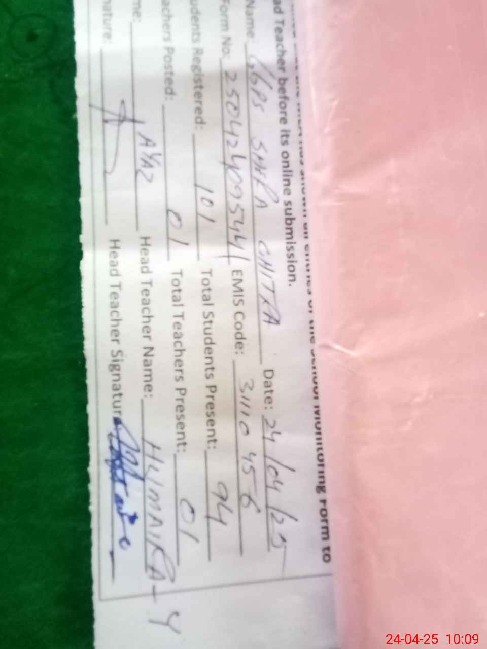 | Name: Hu**** Ya**** Designation: (School Headmaster's/Headmistress's) PST Phone/Cell Number: 03**** |