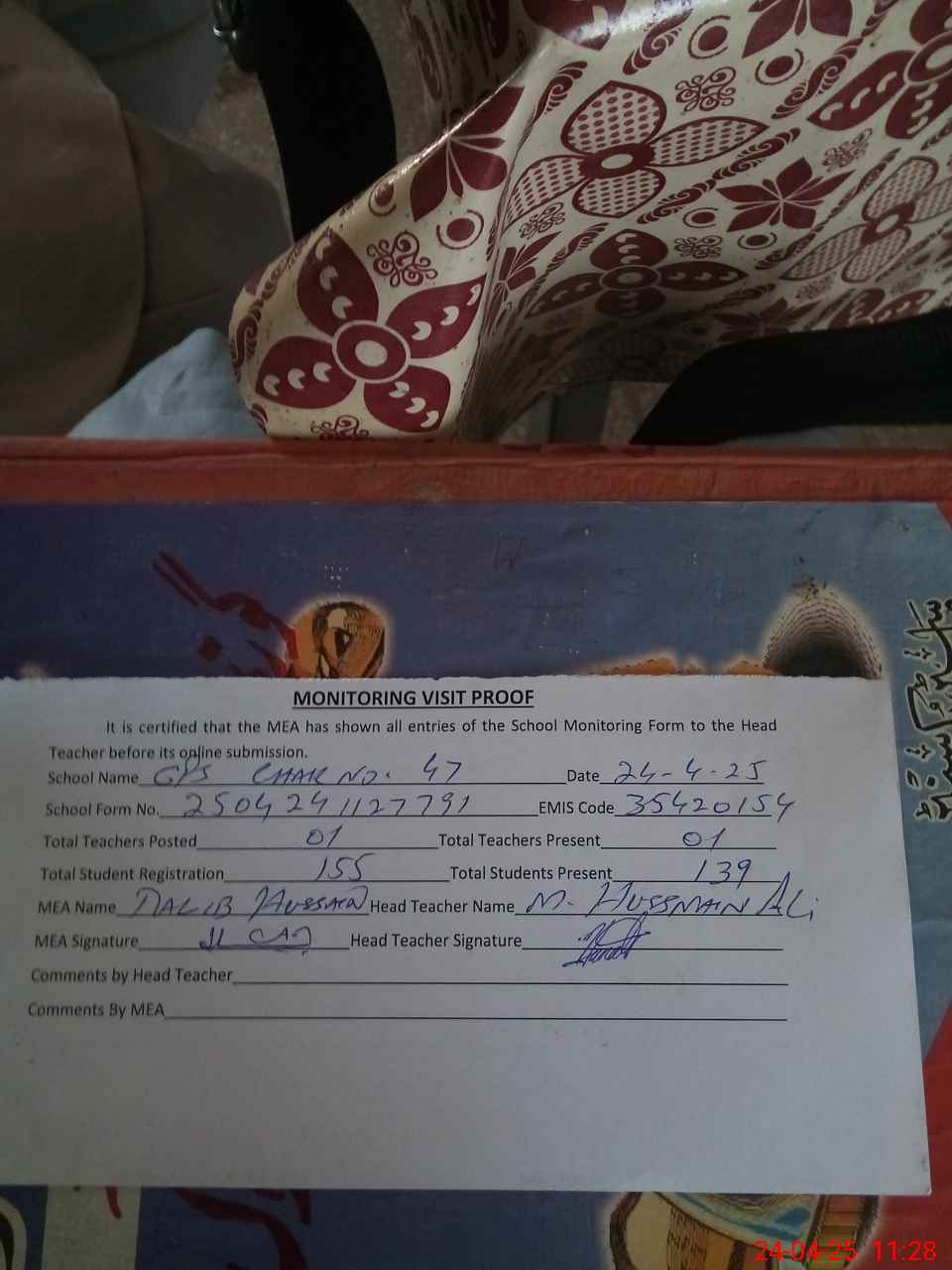 | EMIS Code: 35420154 | Name of School: GPS CHAK 47 | |||