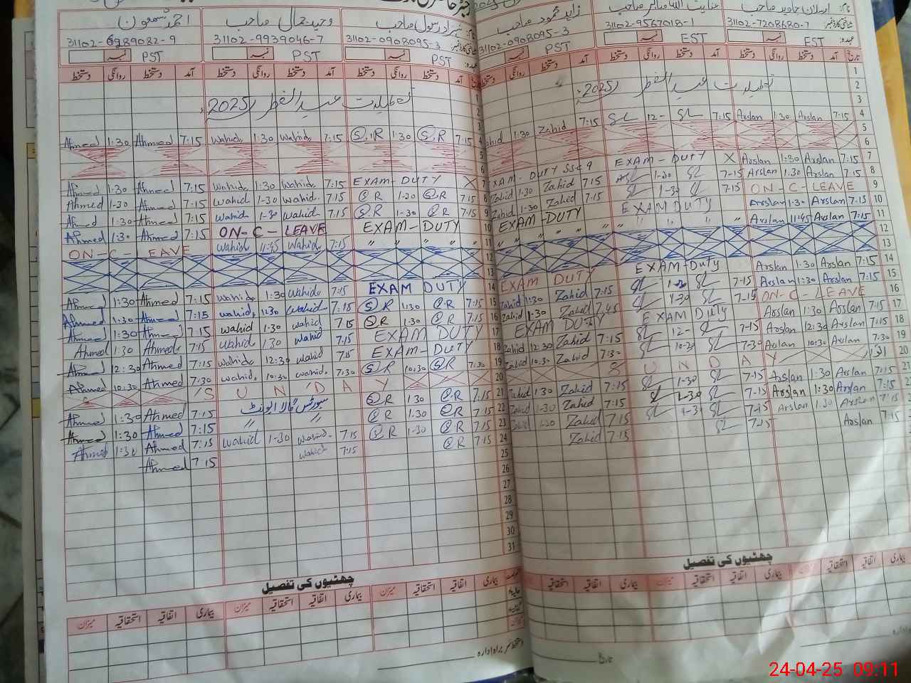 | CNIC | Full Name | Designation | R/C | Absence during last cal. month |