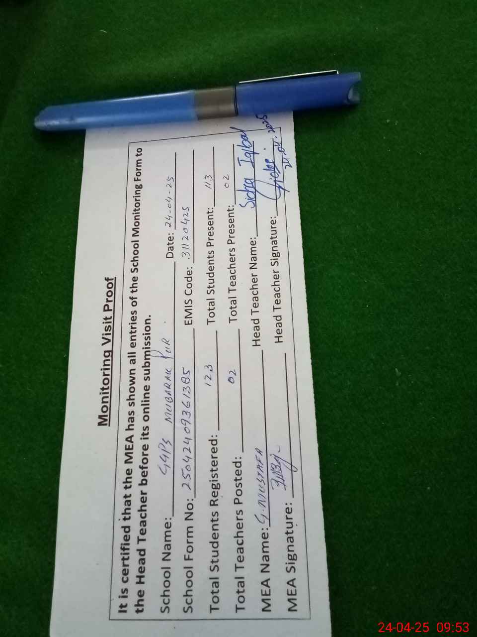 | EMIS Code: 31120425 | Name of School: GGPS MUBARAK PUR | |||