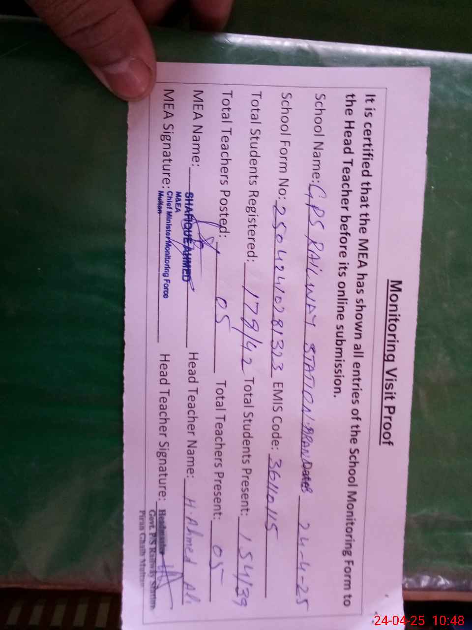| EMIS Code: 36110115 | Name of School: GPS RAILWAY STATION PIRAN GHAIB | |||