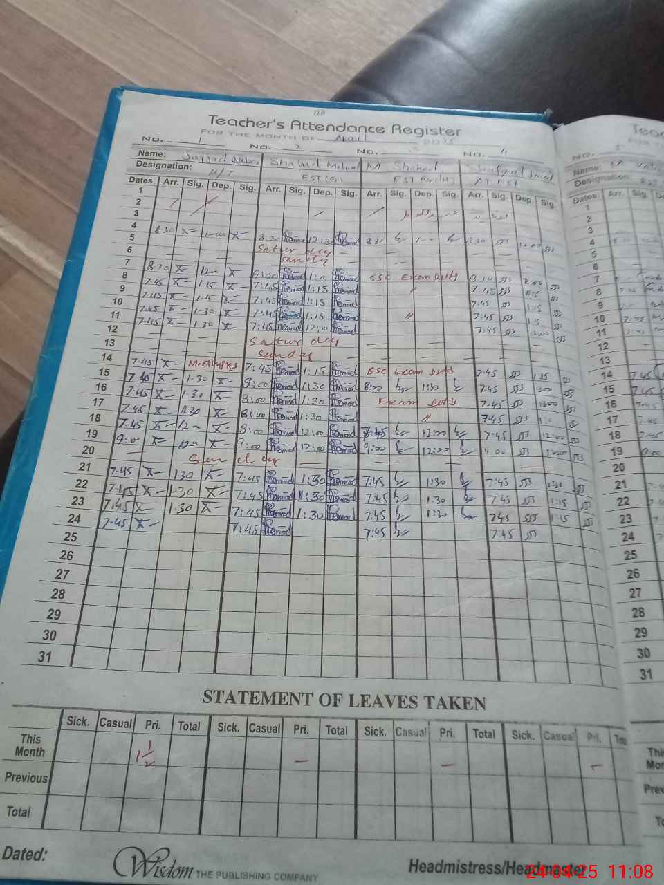 | Leave | Duty | Absent | Maternity | Medical | Ex- Pak |