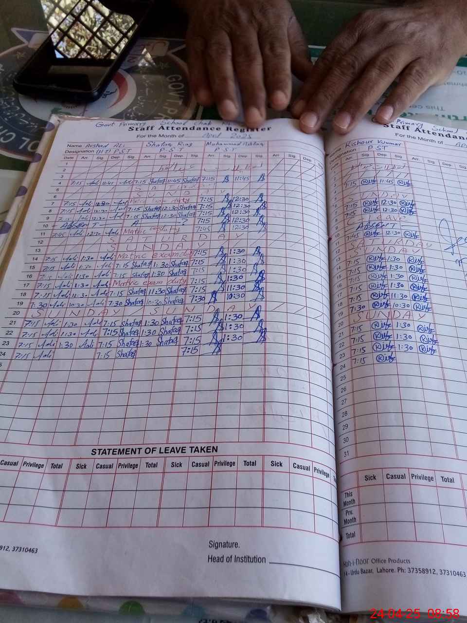 | Name: Ar**** Al**** As**** Designation: (School Headmaster's/Headmistress's) PST Phone/Cell Number: 03**** |