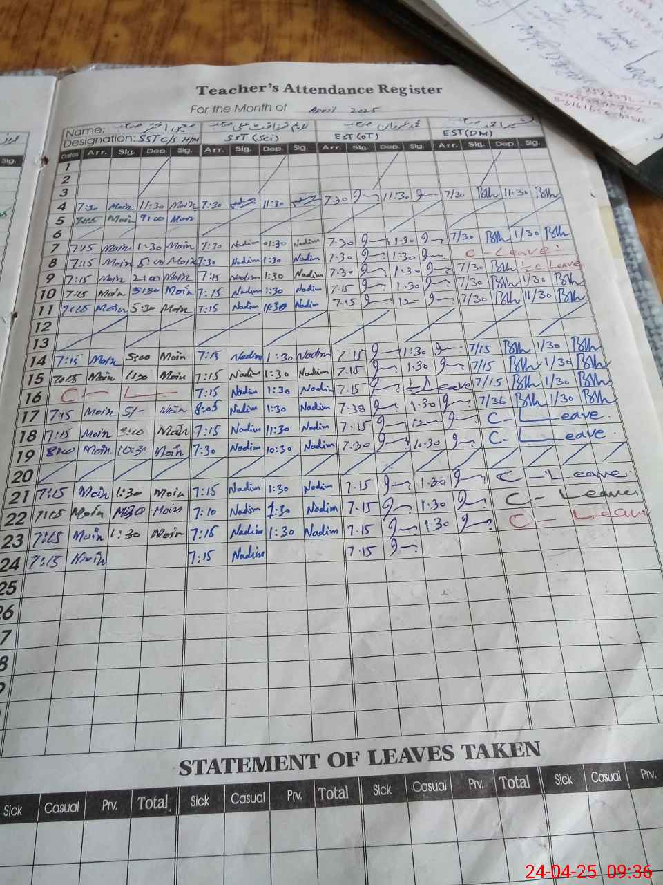 | 31**** | Mu**** Im**** | 2 | 0 | 0 | 31 | 0 | 0 | 0 | 0 | 0 | 0 | Absent (Un-Authorized) | |