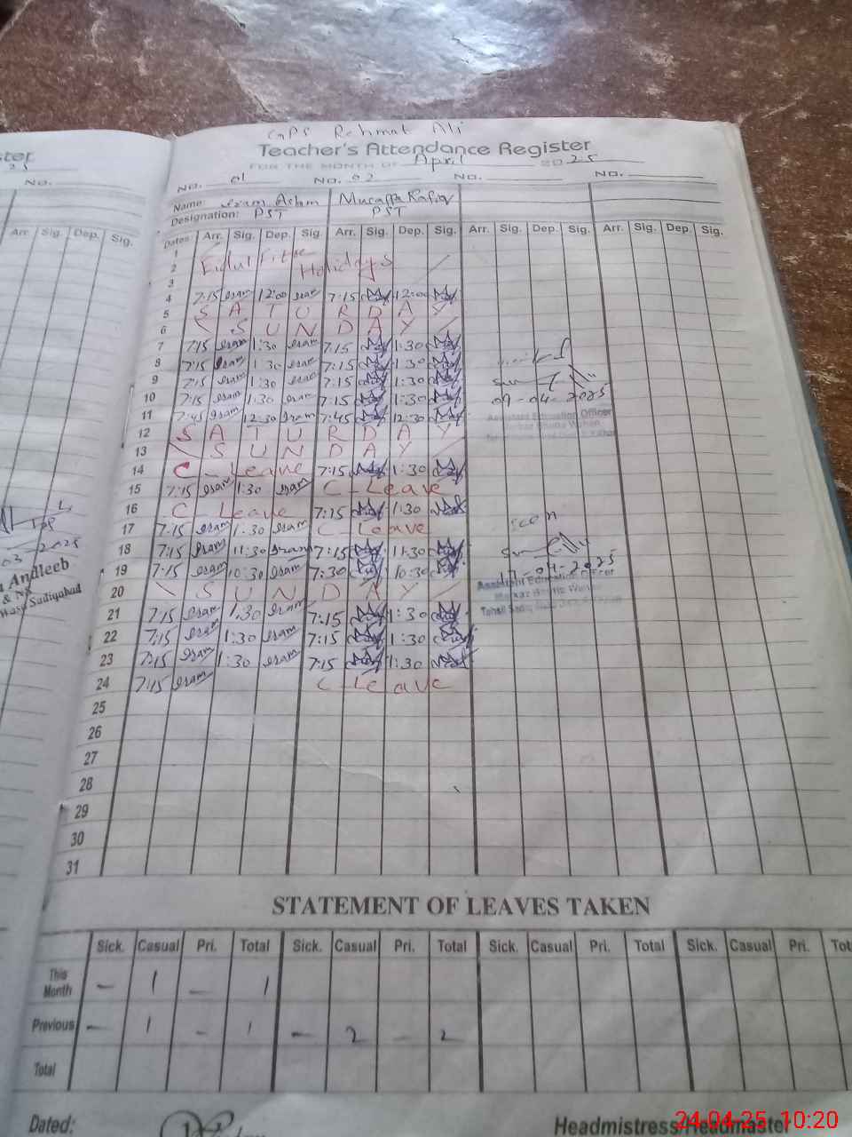 | Name: IR**** AS**** Designation: (School Headmaster's/Headmistress's) PST Phone/Cell Number: 03**** |