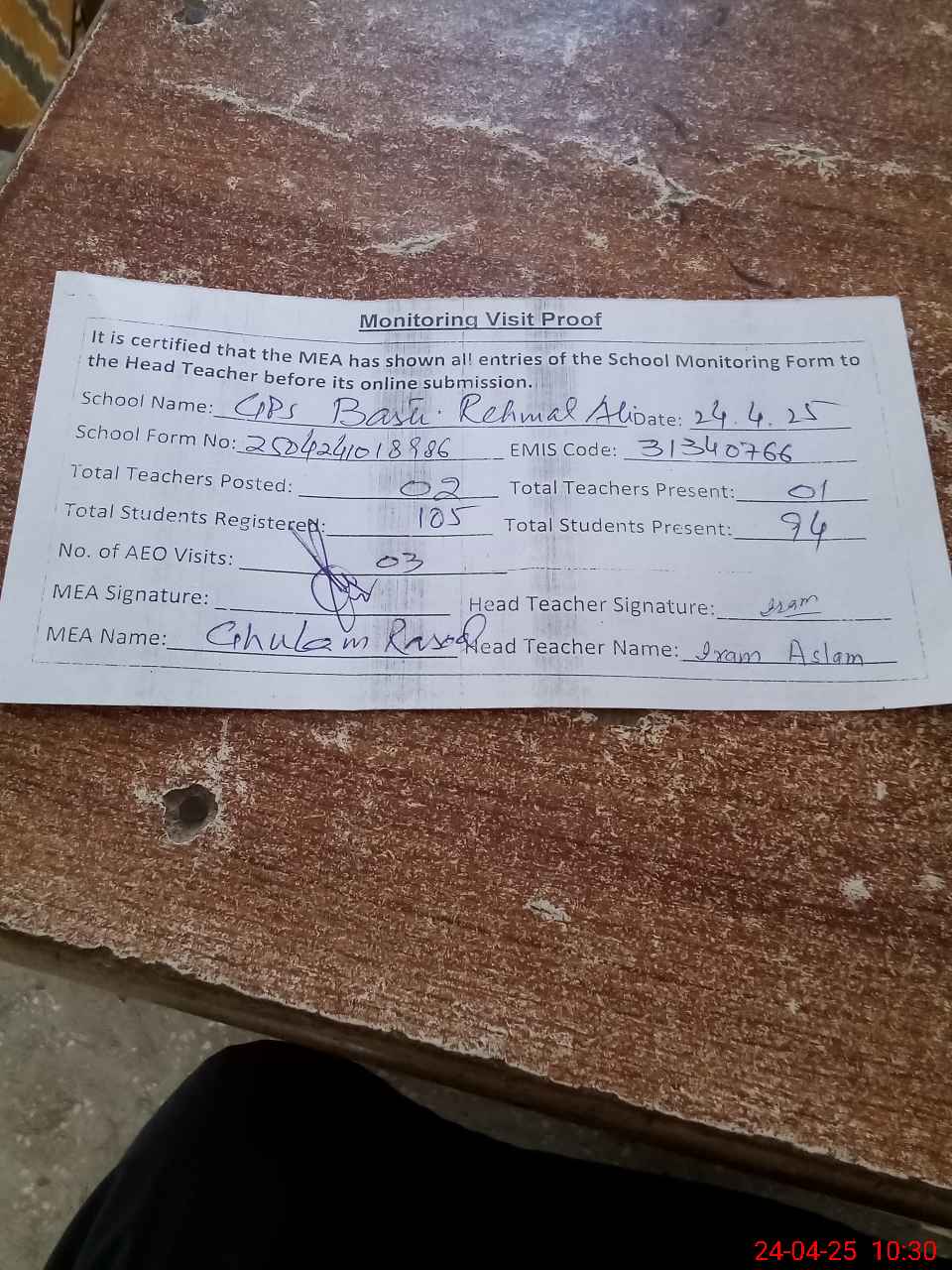 | EMIS Code: 31340766 | Name of School: GPS BASTI RAHMAT ALI | |||