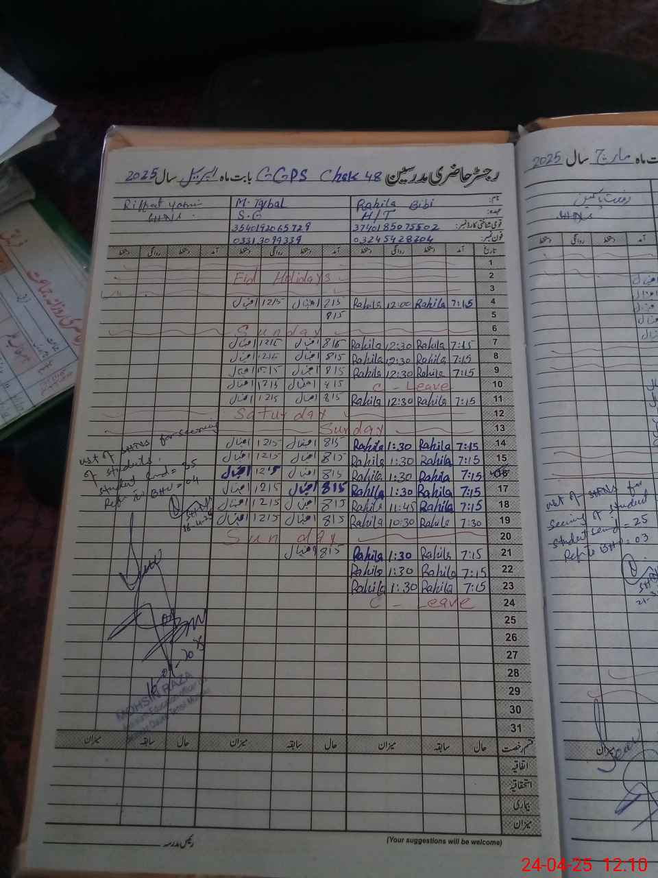 | Name: RA**** BI**** Designation: (School Headmaster's/Headmistress's) PST Phone/Cell Number: 03**** |