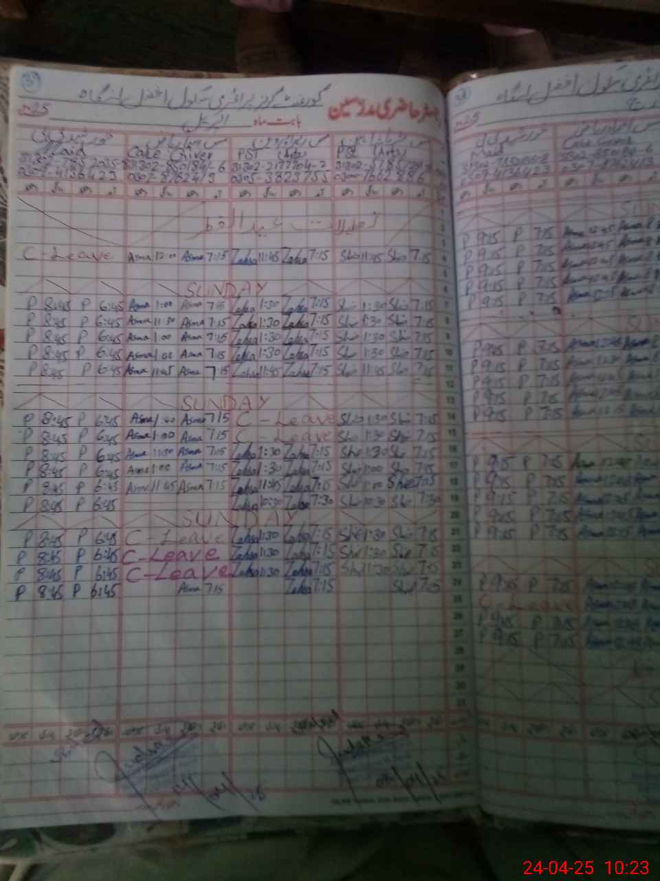 | CNIC | Full Name | Designation | R/C | Absence During Last Calender Month |