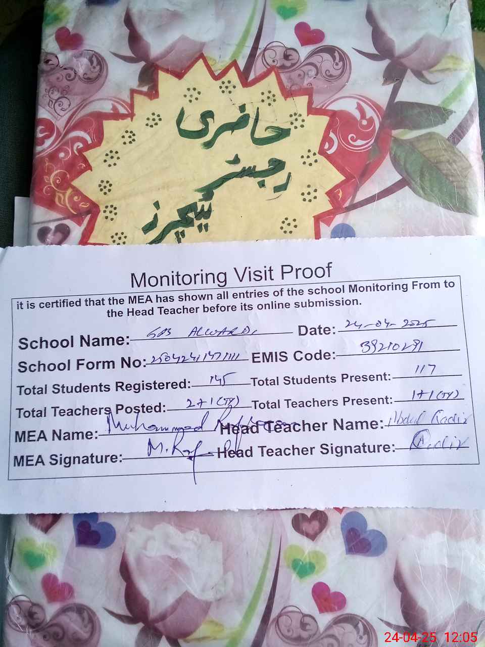 | EMIS Code: 39210291 | Name of School: GPS ALWARDI KHAN | |||