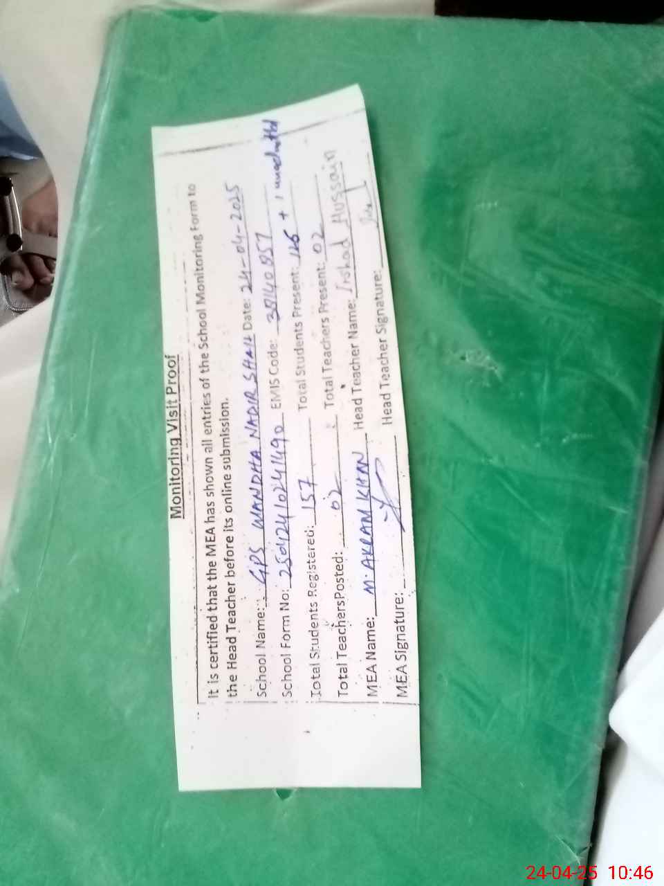 | EMIS Code: 38140857 | Name of School: GPS WANDHA NADIR SHAH | |||