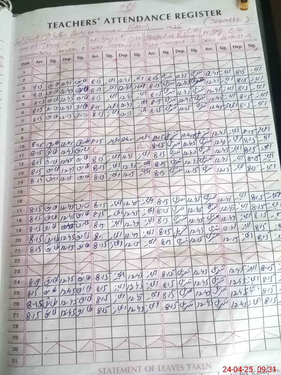 | CNIC | Full Name | Designation | R/C | Absence During Last Calender Month |