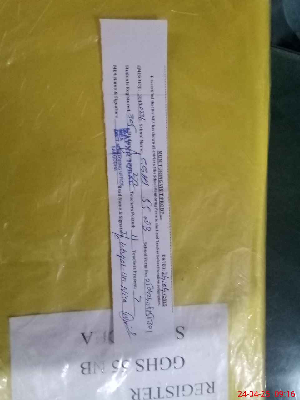 | Attendance Register | Head Teacher | MEA with School | Visit Proof |