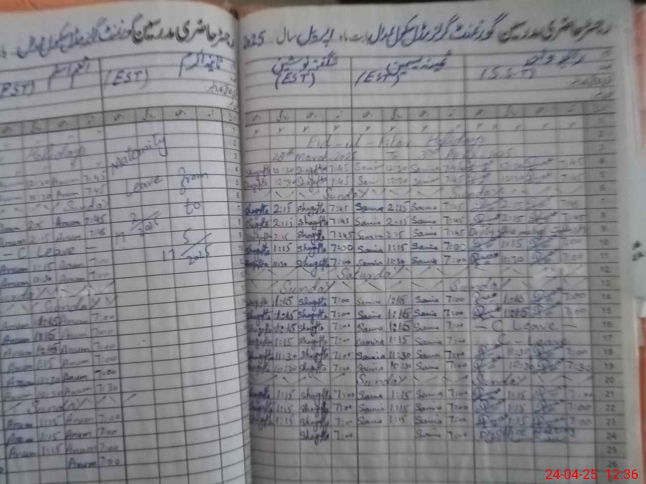 | Leave | Duty | Absent | Maternity | Medical | Ex- Pak |