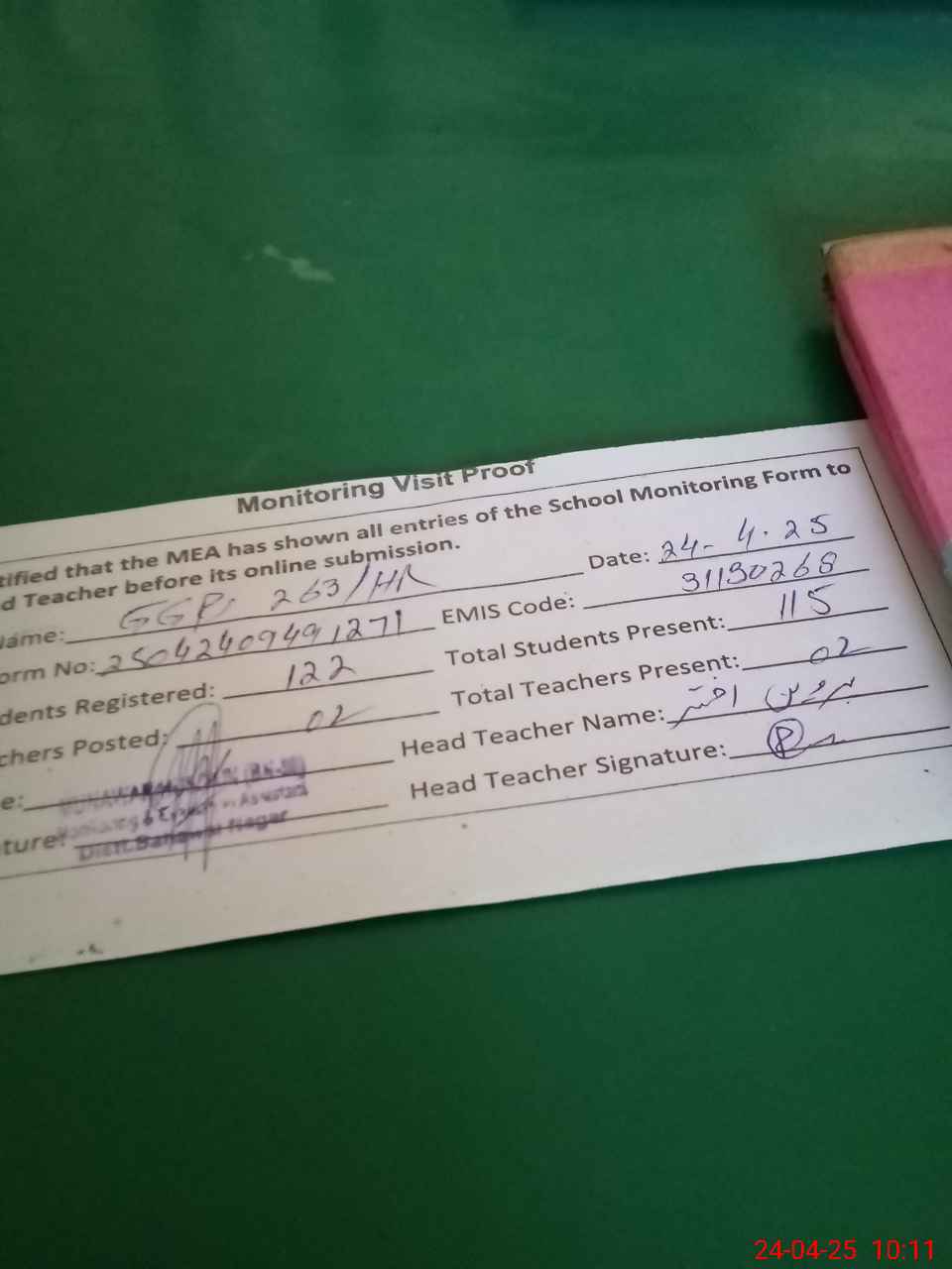 | EMIS Code: 31130268 | Name of School: GGPS CHAK NO. 263 HR | |||