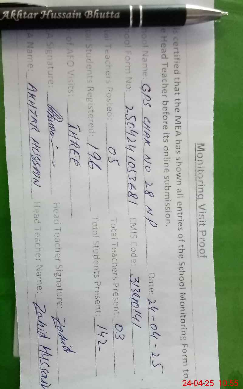 | EMIS Code: 31340141 | Name of School: GPS CHAK NO 28/NP | |||
