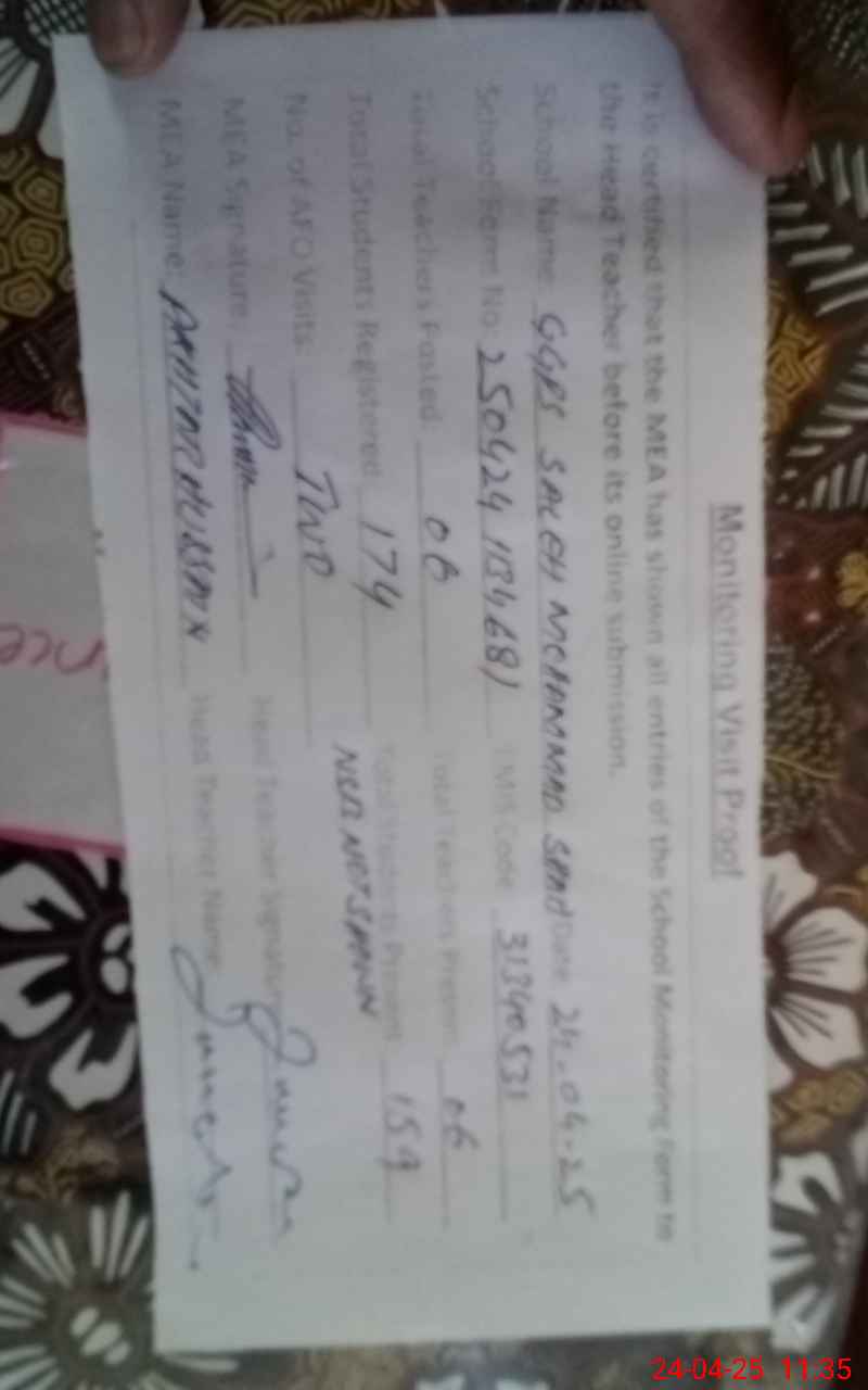 | Certified that this School was Inspected by the Undersigned MEA/DMO Today and the Information Stated Above is as Per Record. | |||||