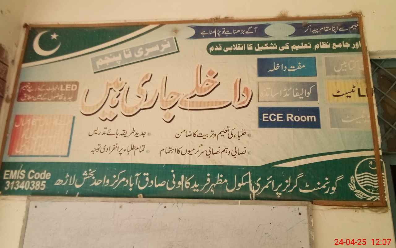 | EMIS Code: 31340385 | Name of School: GGPS MAZHAR FARID COLONY | |||