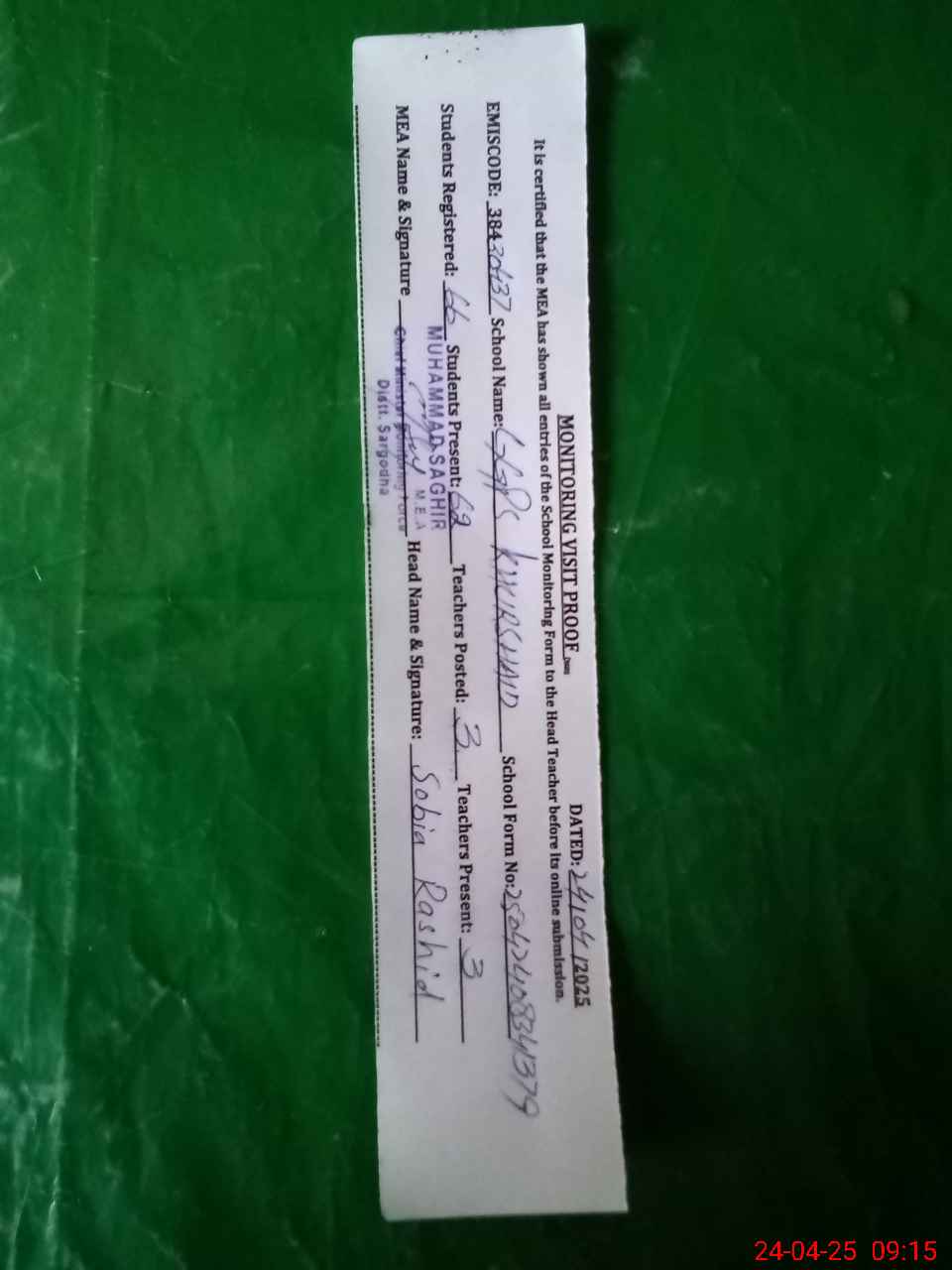 | EMIS Code: 38430437 | Name of School: GGPS KHURSHID | |||