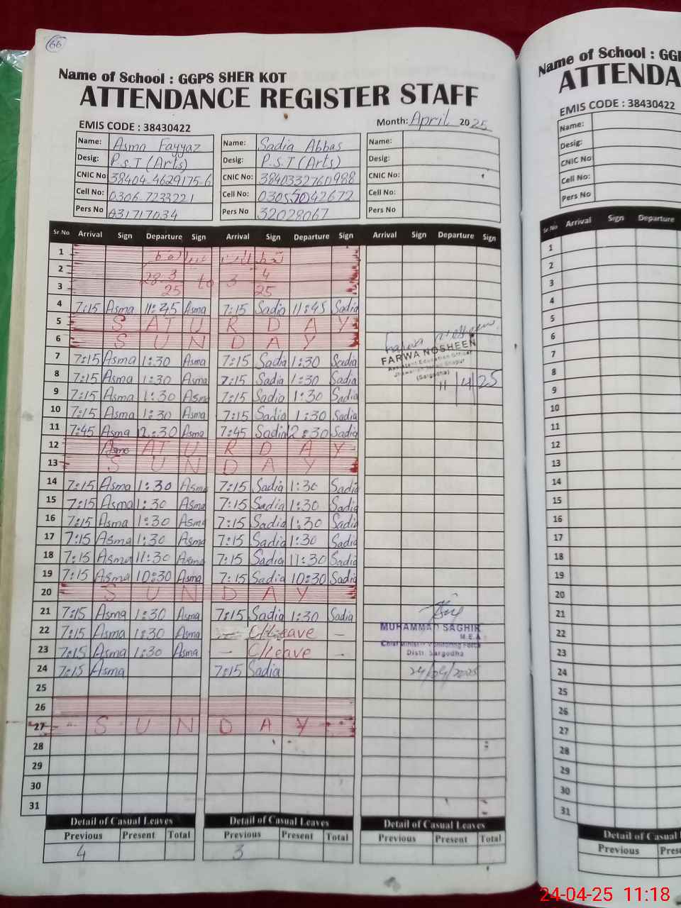 | Name: AS**** FA**** Designation: (School Headmaster's/Headmistress's) PST Phone/Cell Number: 03**** |