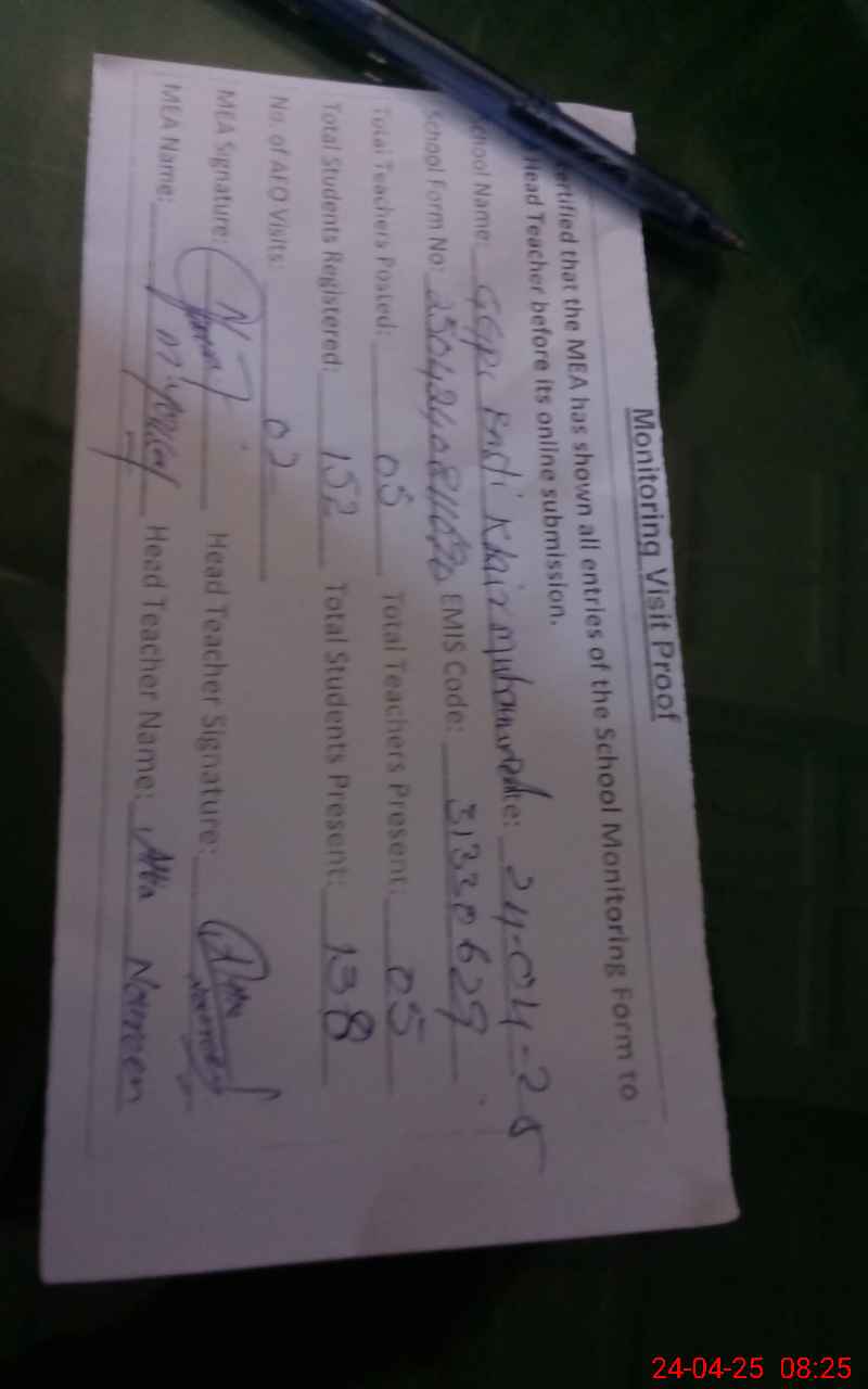 | EMIS Code: 31330629 | Name of School: GGPS BASTI KHAIR MUHAMMAD KHOKHAR | |||