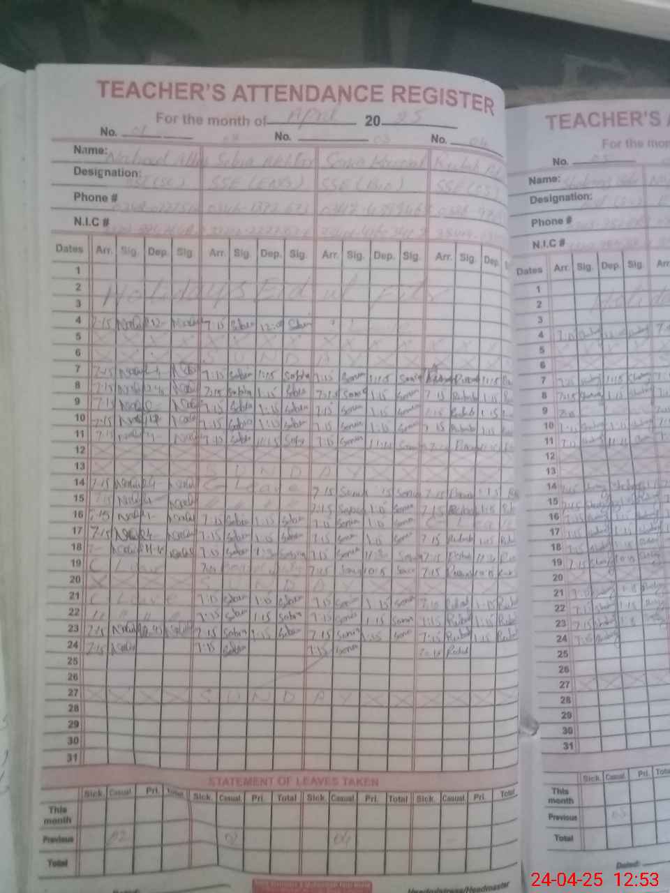 | 33**** | Kh**** Be**** | 3 | 1 | 0 | 0 | 0 | 0 | 0 | 0 | 0 | 0 | 0 | Absent (Un-Authorized) |