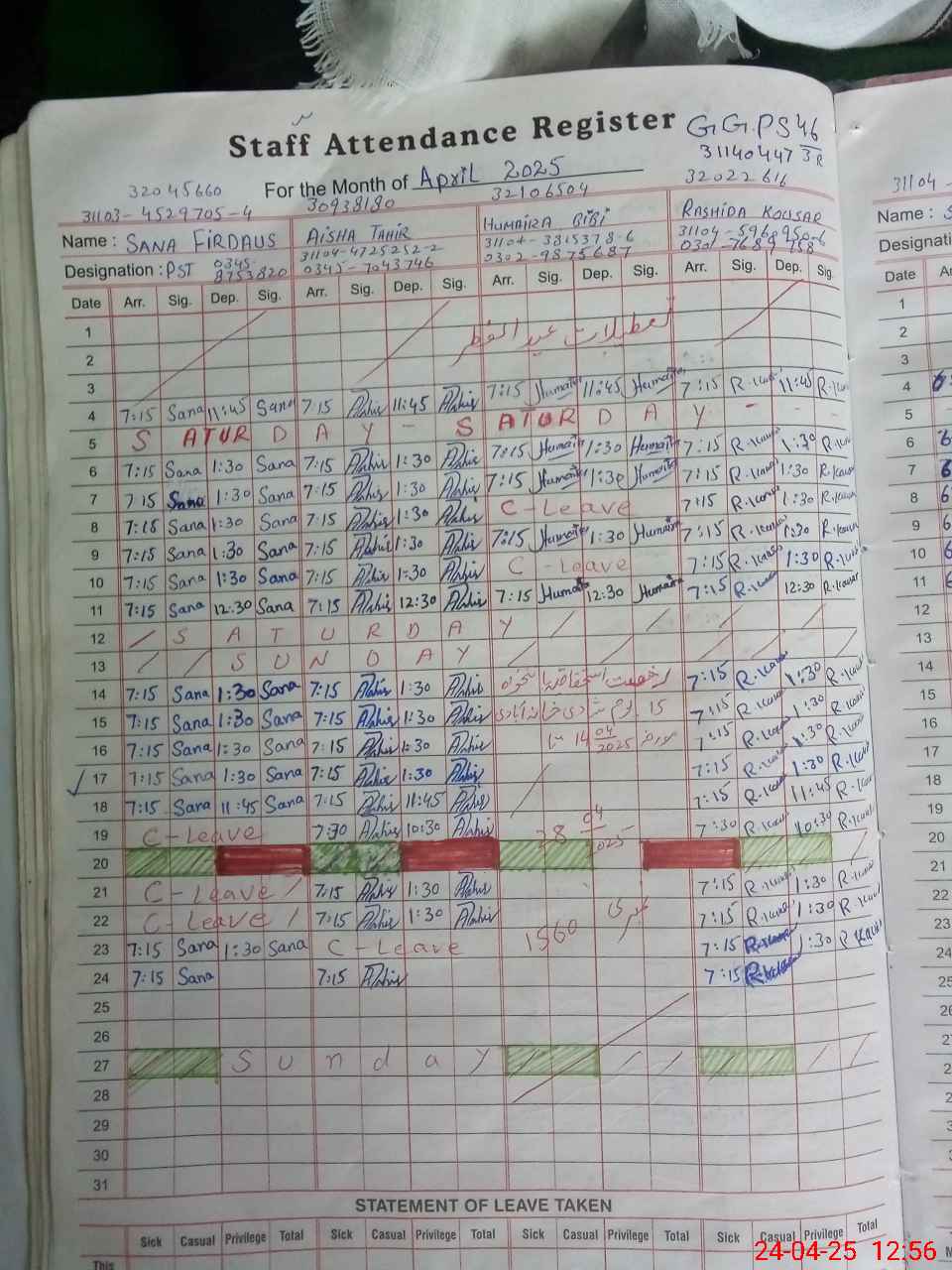 | Leave | Duty | Absent | Maternity | Medical | Ex- Pak |