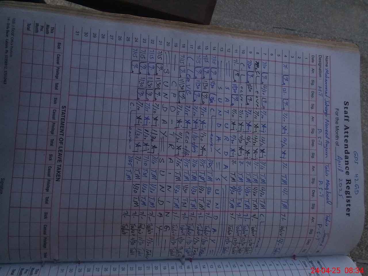 | 35**** | Na**** An**** | PST | Regular | 2 | 0 | 0 | 0 | 0 | 0 | 0 | 0 | 2 | Casual |