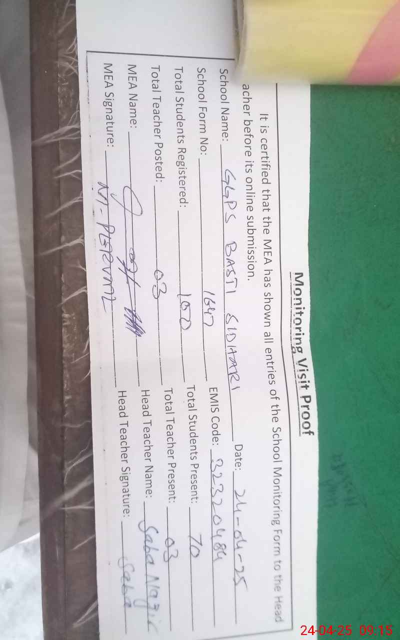 | EMIS Code: 32320484 | Name of School: GGPS BASTI SADHARI | |||