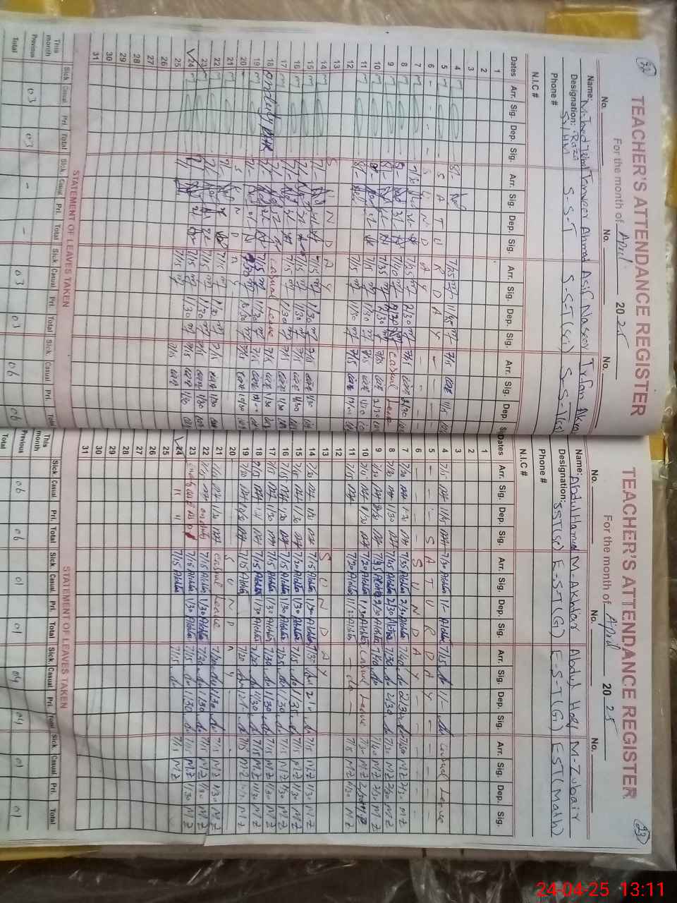 | 36**** | Ab**** Ha**** | Regular | 3 | 0 | 0 | 0 | 0 | 0 | 0 | 0 | 3 | Exam Duty | |